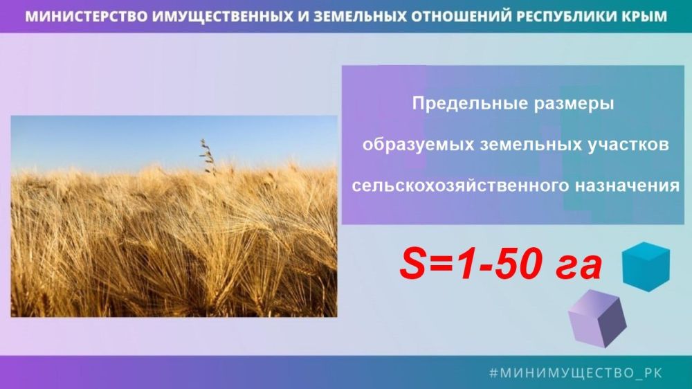 Министерство имущественных и земельных отношений Республики Крым напоминает о том, что минимальный размер образуемых новых земельных участков из земель сельскохозяйственного назначения,