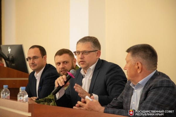 В рамках проекта «Разговоры о важном» вице-спикер крымского парламента Владимир Бобков и заместитель председателя Фонда «Защитники Отечества» в Республике Крым, участник специальной военной операции Дмитрий Воронин встретились со студентами Крымского филиала Российского государственного университета правосудия.
