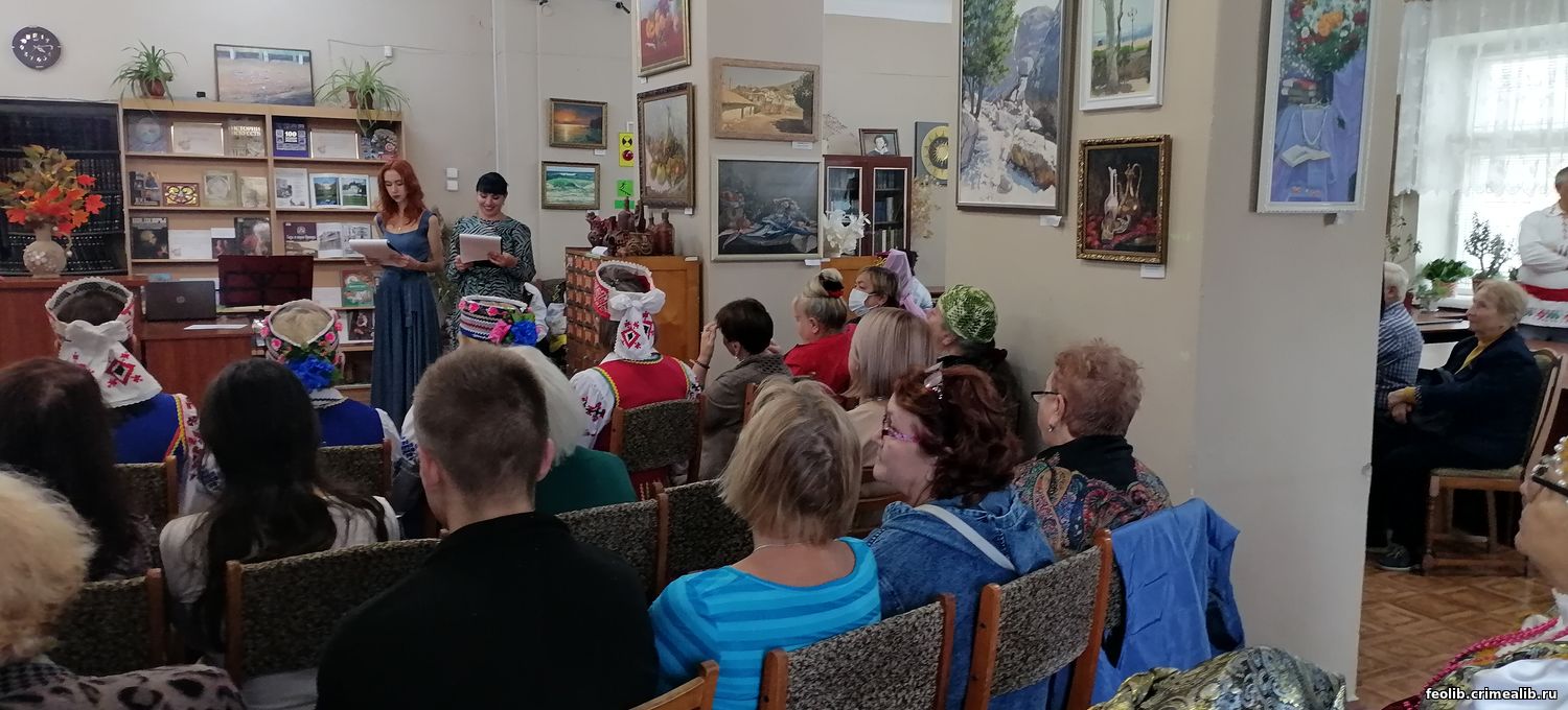 Ведущие мероприятия - заведующая отделом обслуживания Наталья Архипова и библиотекарь Екатерина Ковальчук, увлекли гостей рассказом об уникальном, многогранном и многообразном искусстве Республики Крым. Иллюстрациями рассказа стали музыка, живопись, литература, хореография в исполнении талантливых феодосийцев.