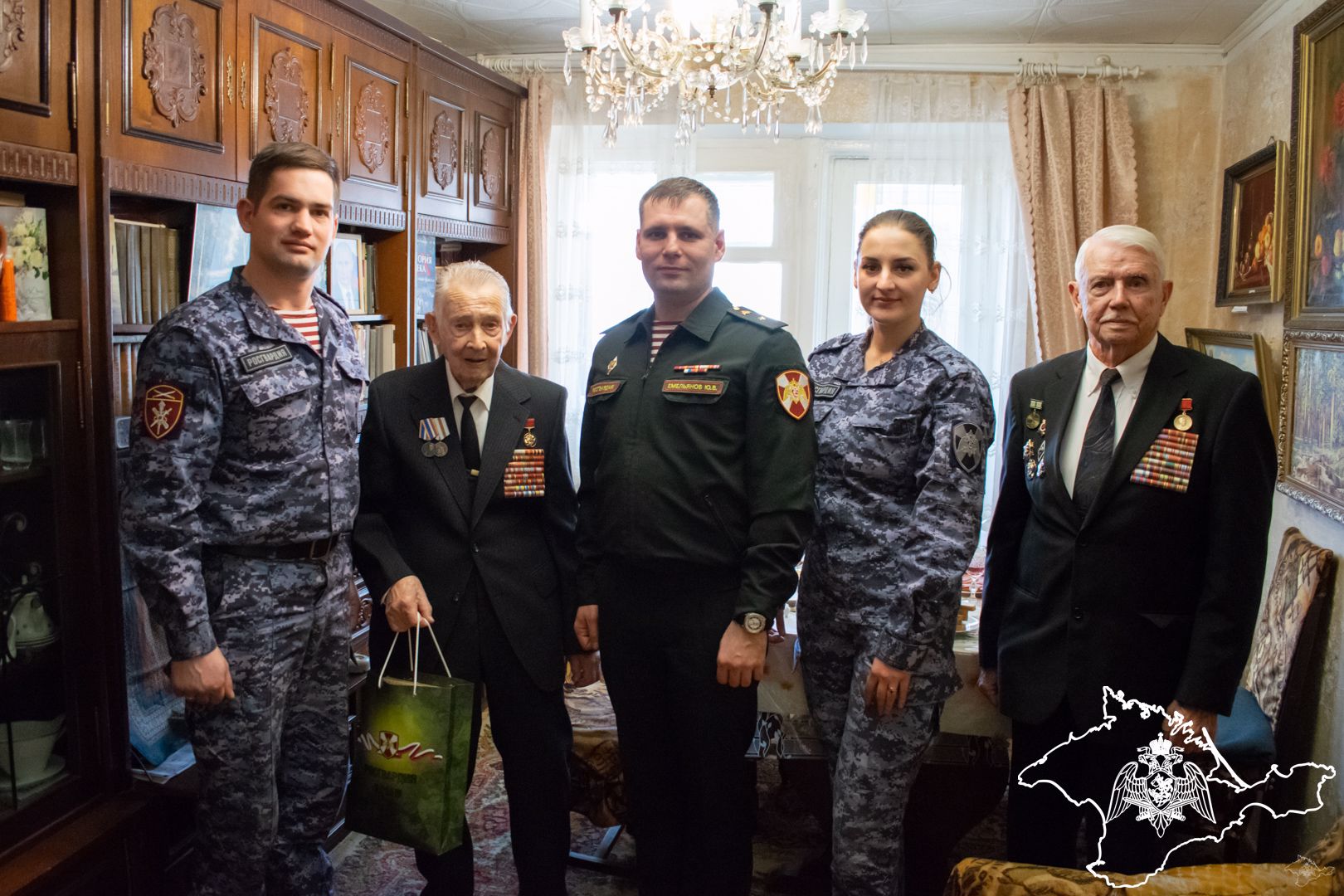 В Симферополе в День защитника Отечества сотрудники и военнослужащие Росгвардии навестили ветерана войны, ветерана НКВД, Министерства внутренних дел Крыма,