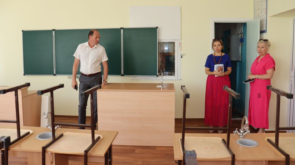 Глава администрации Сакского района Владислав Хаджиев вместе с заместителем начальника отдела образования Натальей Илларионовой посетили 3 школы