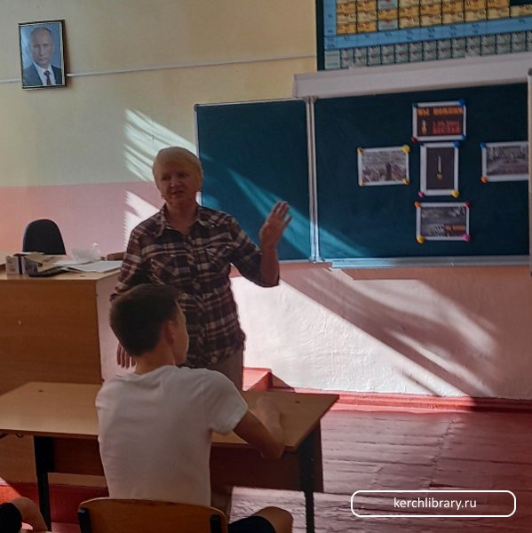 Библиотекарь детского отдела Кравчина О. А. рассказала учащимся о событиях девятнадцатилетней давности, которые произошли 1 сентября 2004 года в городе Беслан в Северной Осетии. Группа террористов захватила школу и три дня удерживала в заложниках более тысячи человек, большинство из которых были дети. Рассказала о страданиях, которые перенесли дети, родители, учителя; о жестокости и бесчеловечности террористов; об отваге и мужестве спецназа.