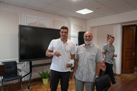 Далее в рамках церемонии награждения президент РОО «Федерация спортивного туризма Крыма» Алексей Гурьянович Ильиных вручил студентам удостоверения «Турист России» и соответствующие нагрудные значки.