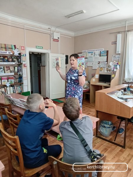 В начале мероприятия Татаринова А. Л. поздравила ребят с окончанием учебного года, рассказала об истории возникновения праздника. Ребята познакомились с выставкой «На все времена – книги юбиляры 2024». К мероприятию была подготовлена книжная полка «Читаем летом», на которой представлены книги В. Губарева, К. Булычёва, Л. Гераскиной и многих других авторов. Произведения этих авторов забавные и весёлые, заставляющие размышлять над своим поведением и поведением своих сверстников, а главное – эти книги знакомы и любимы многим поколениям детей и взрослых.