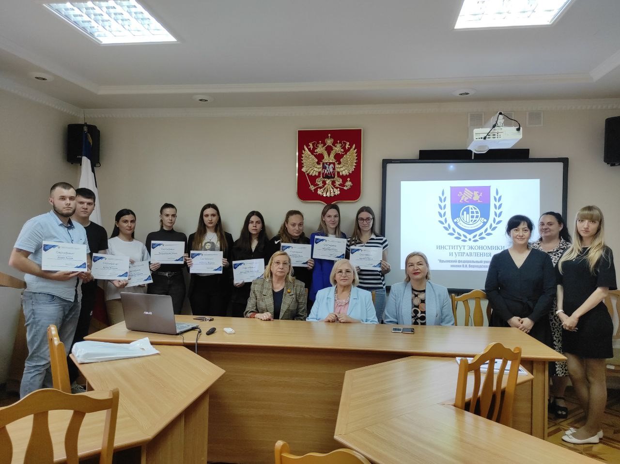 14 июня 2023 г. в стенах Института экономики и управления состоялось торжественное награждение обучающихся, успешно завершивших цикл лекций по факультативной дисциплине СтудентСтат: «Теория и практика. Наглядная статистика», который возглавляла заместитель руководителя Управления Федеральной службы государственной статистики по Республике Крым и г. Севастополю Григорь Н.Н.