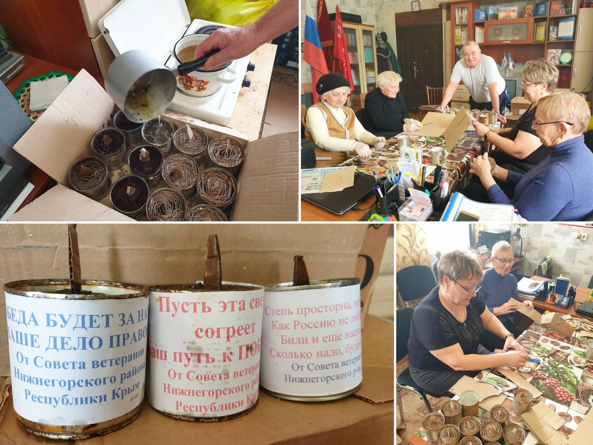 Совет ветеранов Нижнегорского района активно участвует в акции "Согрей солдата!", организованной Нижнегорским отделением "Единой России". Сотни сделанных вручную окопных свечей местные волонтеры затем доставляют мобилизованным на передовую.
