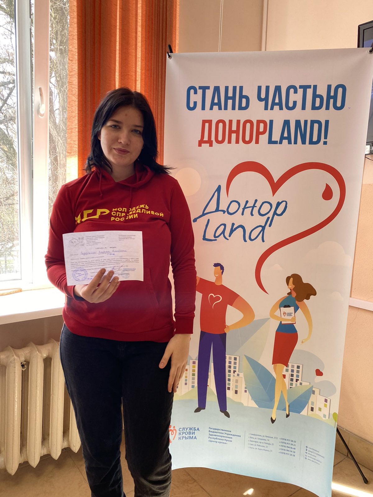 Член Крымской Молодёжки Влада Задорожная решила показать на собственном примере как нужно действовать и в честь праздника отправилась в одну из местных больниц Симферополя для того, чтобы сдать кровь.