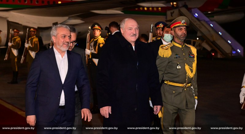 Президент Белоруссии Александр Лукашенко в тегеранском аэропорту Мехрабад.