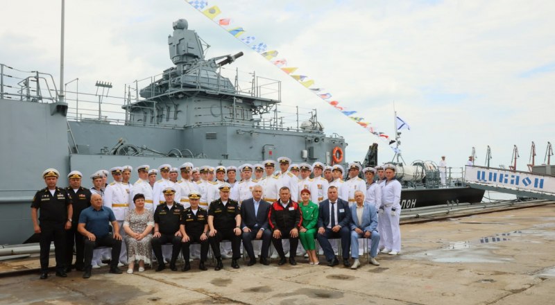 Главком ВМФ наградил отличившихся заводчан медалями «Адмирал Флота Советского Союза С. Г. Горшков». Адмирал Николай Евменов отметил, что корабль усилит надводную составляющую Черноморского флота.