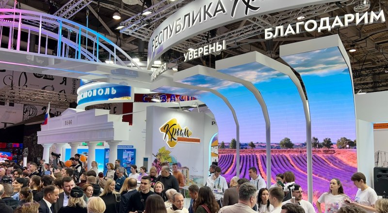 На международной выставке-форуме «Россия», в Москве, прошёл День Республики Крым. Для посетителей выставки на крымском стенде подготовлена насыщенная и разнообразная программа: виртуальная экскурсия на фабрику мороженого, тематическая артзона «Дыши Крымом» с дегустацией крымских ароматов, мастер-классы, розыгрыши путёвок, работа кинозала и выступления резидентов «Таврида.Арт», приём врача курортолога, работа «живых скульптур». Гостей выставки поприветствовали глава Республики Крым Сергей Аксёнов и председатель Государственного Совета Республики Крым Владимир Константинов.
