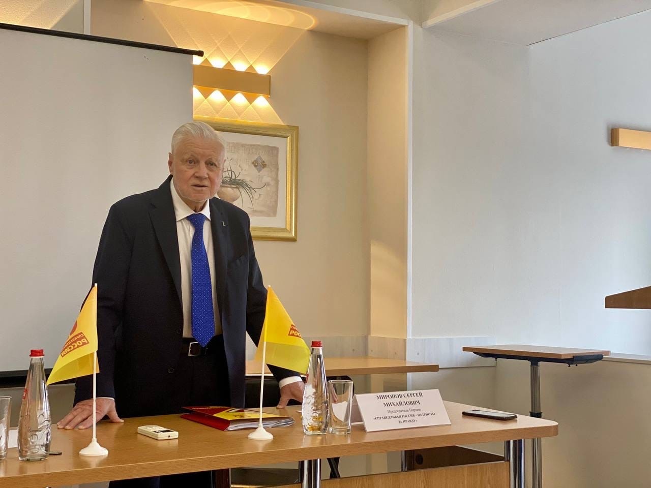 В ходе встречи с общественниками и партийцами, Степан Кискин подарил Сергею Миронову Государственный флаг Республики Крым с добрыми пожеланиями и подписями от справедливороссов полуострова.