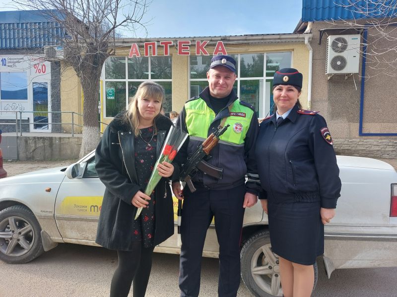 Сотрудники полиции вручили женщинам цветы и пожелали весеннего настроения и счастья.