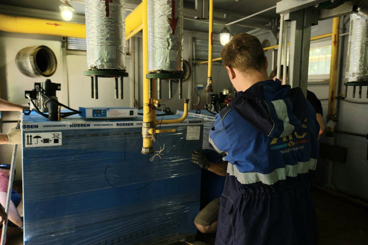 Помимо установки котлов меняют и дымоходы. Как сообщил главный инженер предприятия Роман Счастливый, замена проводится из-за изношенности дымохода и разности диаметров с котлом.