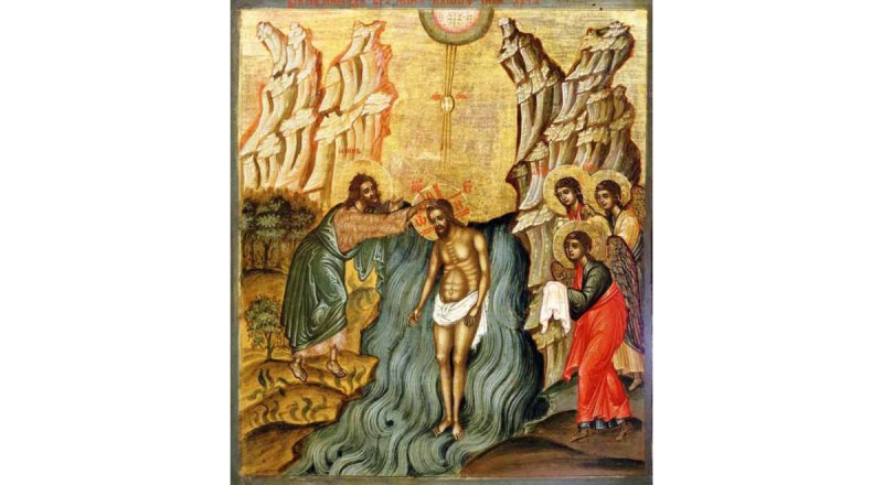 По слову евангельскому, Спаситель принял Святое Крещение в реке Иордан от Своего великого Пророка и Предтечи Иоанна: «И когда выходил из воды, тотчас увидел Иоанн разверзающиеся небеса и Духа, как голубя, сходящего на Него. И глас был с небес: Ты Сын Мой Возлюбленный, в Котором Мое благоволение» (Мк. 1 : 9-11).