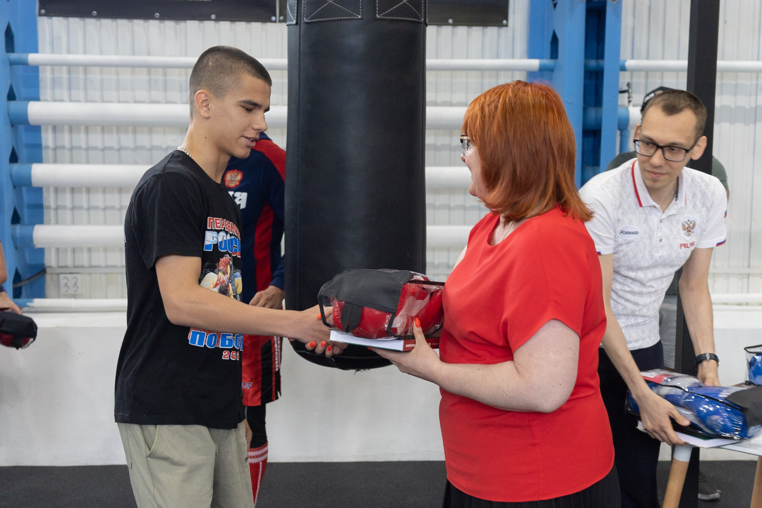 После приветственных речей Умар Кремлёв и Татьяна Кириенко сфотографировались с ребятами и ответили на вопросы всех желающих. Гости приехали на базу не с пустыми руками: все боксёры получили в подарок новые перчатки, а также книгу Александра Колесникова «Как стать чемпионом лёжа на диване».