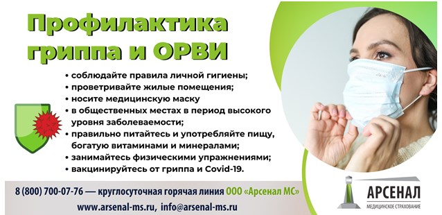 При возникновении вопросов о профилактических мероприятиях и медицинской помощи по полису ОМС, обращайтесь в ООО «Арсенал медицинское страхование» («Арсенал МС») по круглосуточному бесплатному телефону контакт-центра 8-800-700-07-76 . Наши страховые представители защитят ваши права и помогут вам.