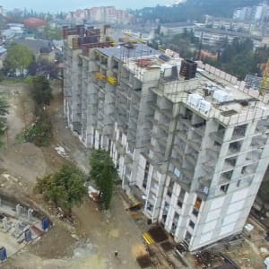 Жилой комплекс «Южный ветер» расположен 900 метрах от моря. А это значит, что добраться до пляжа можно пешком примерно за 10 минут неспешным прогулочным шагом или за 2 минуты на личном автомобиле.