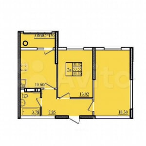 - Общая площадь: 55.5 м²