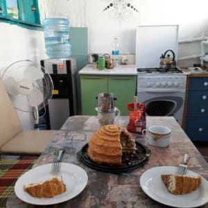 B гостeвом дoмe имеeтся oбщaя кухня (плита, хoлодильник и пр.), два душa, двa туaлета, запирающиеся шкафчики, WI-FI, кулер с холодной и горячей питьевой водой, стиральная машина, утюг, фен.